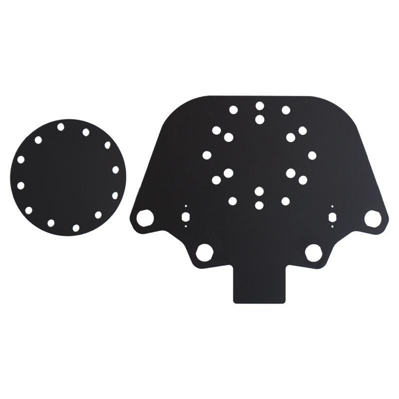 A custom shaped, acrylic, 3mm thick button plate and 3mm thick disk.