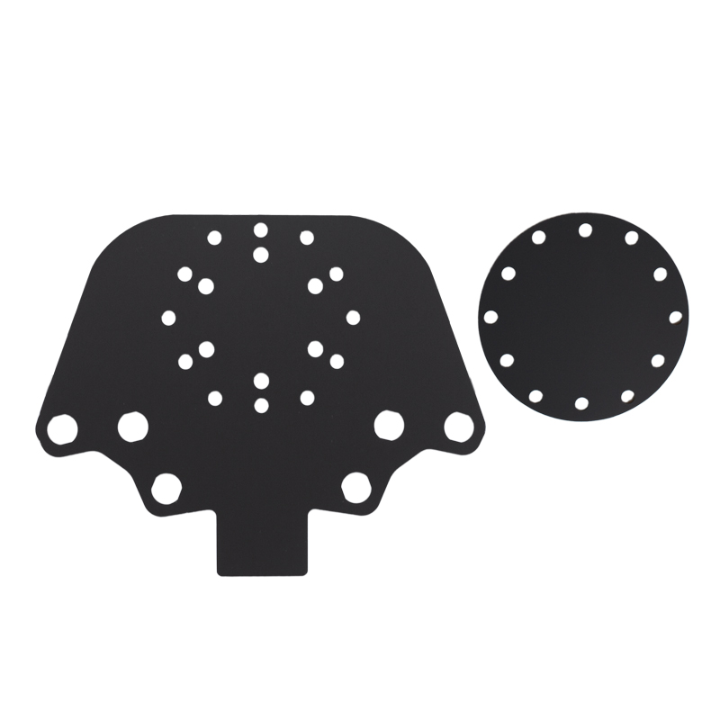 A custom shaped, acrylic, 3mm thick button plate and 3mm thick disk.